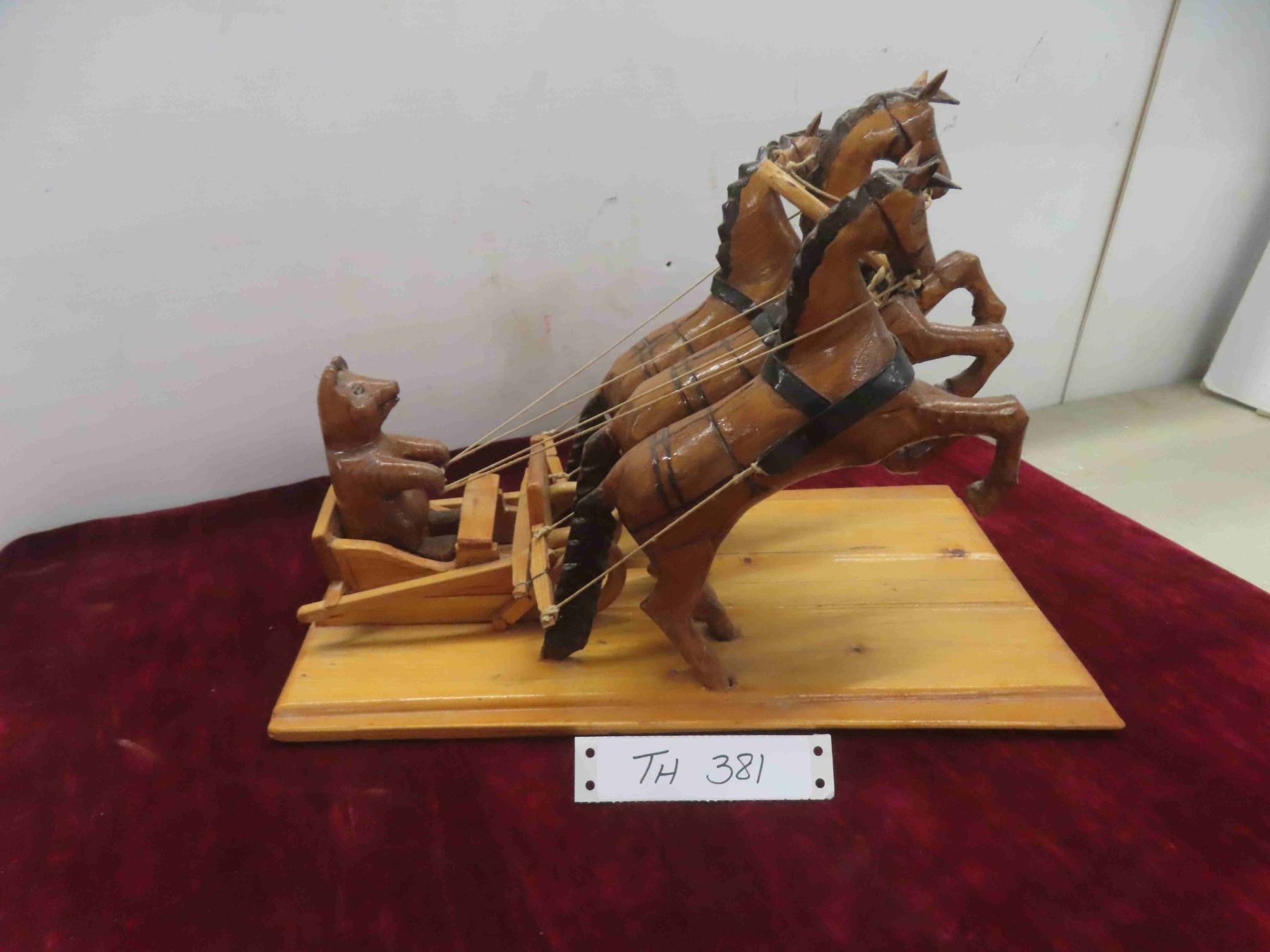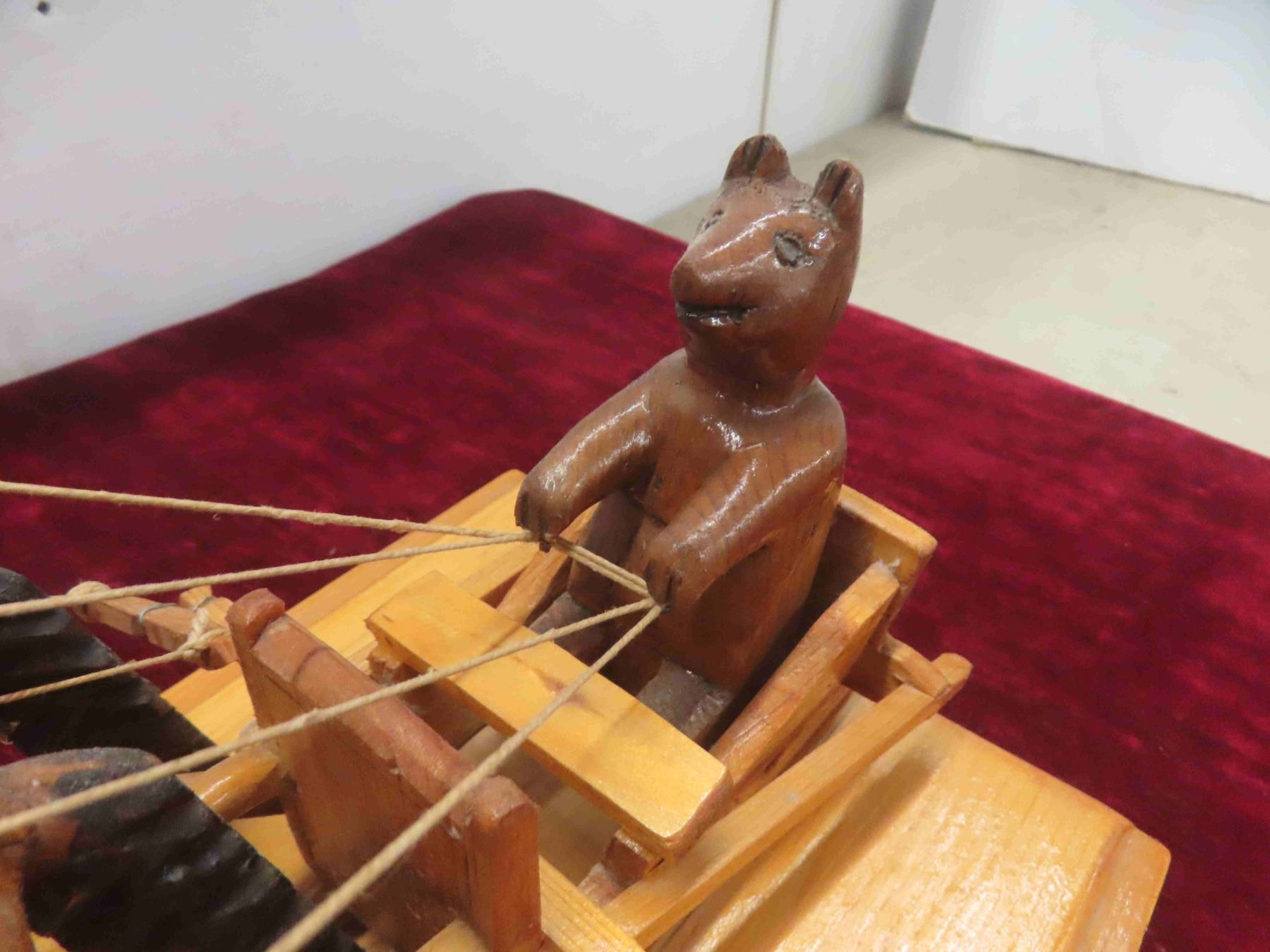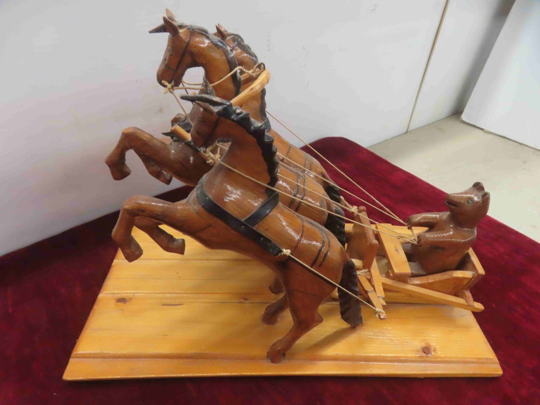 russian folkart bear driving horses on sled. 15x9x11"