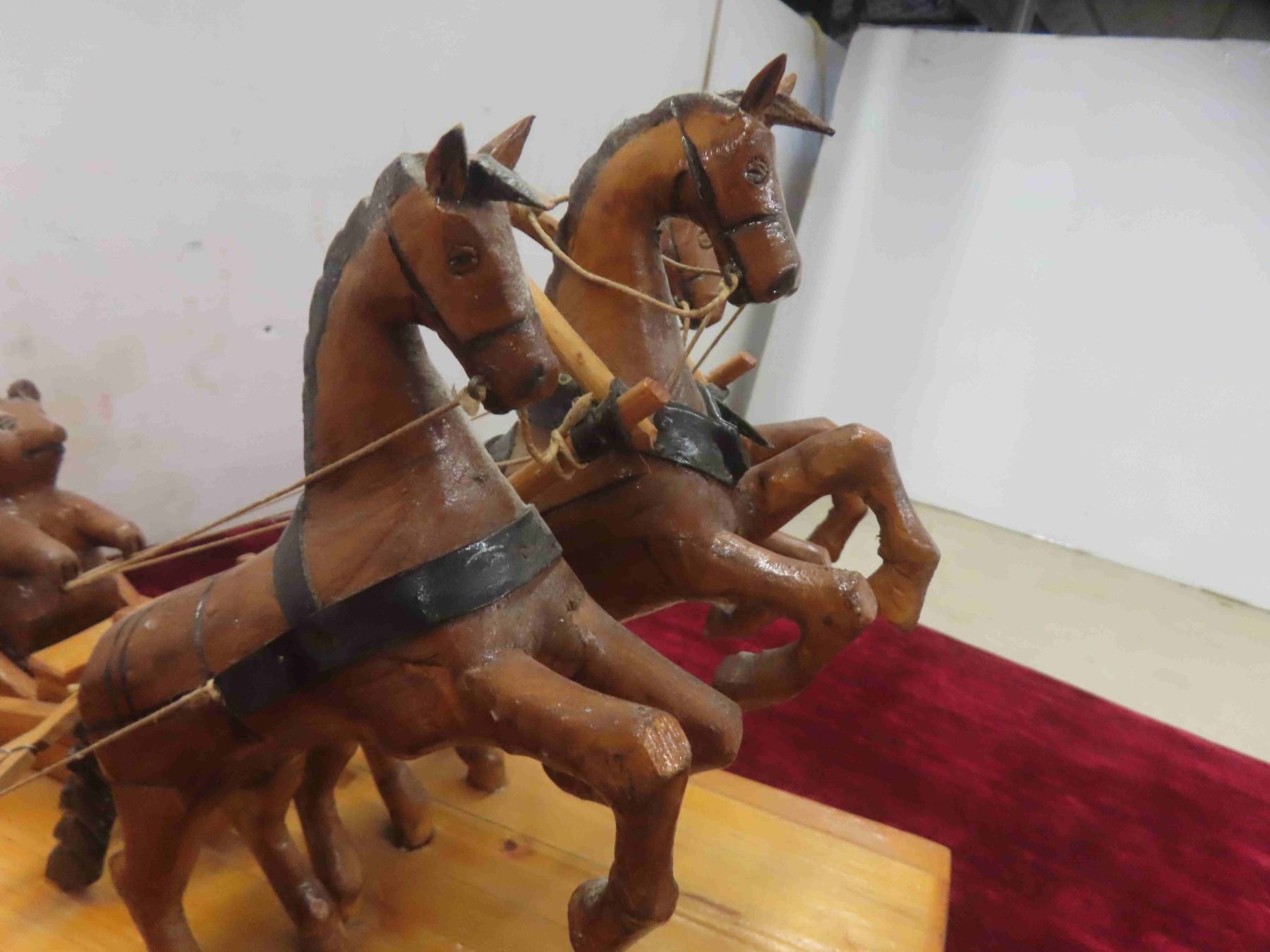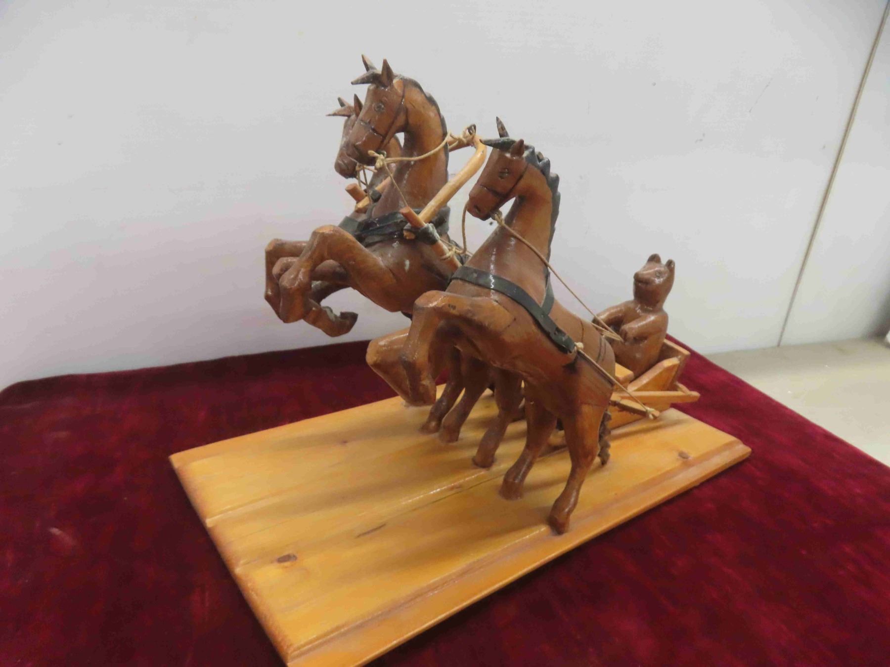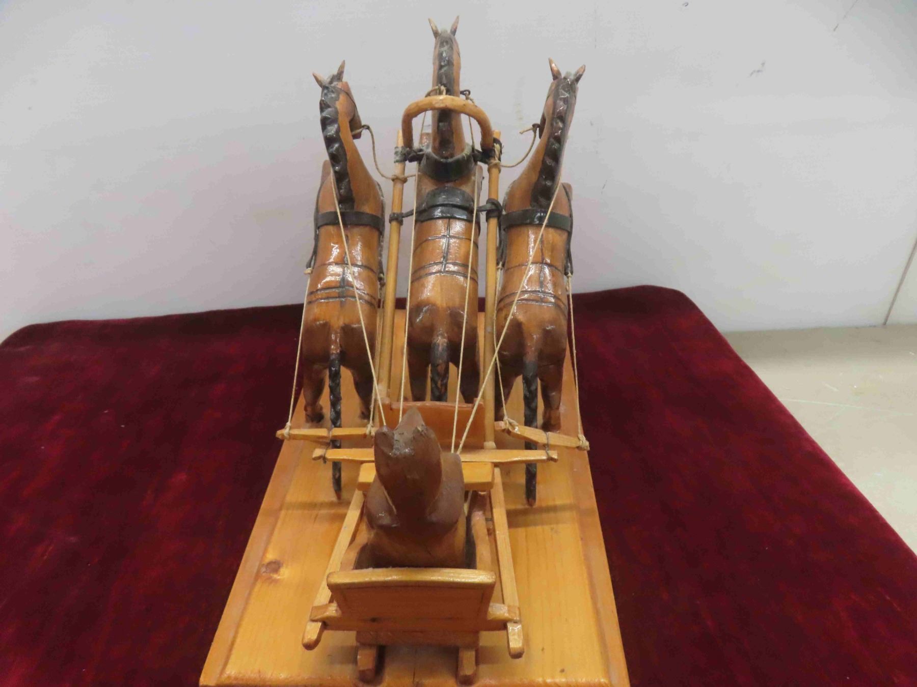 russian folkart bear driving horses on sled. 15x9x11"