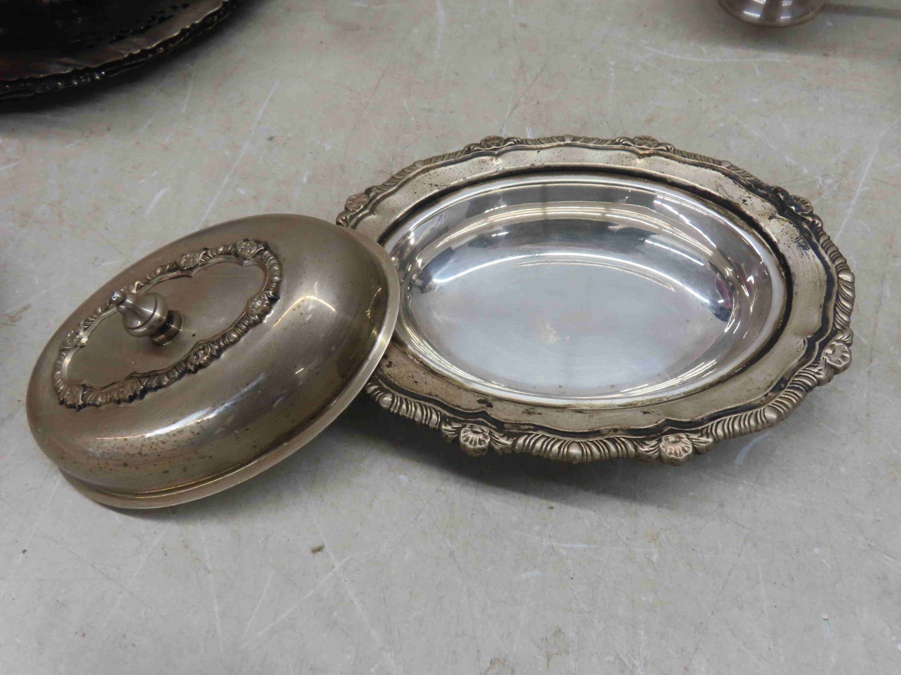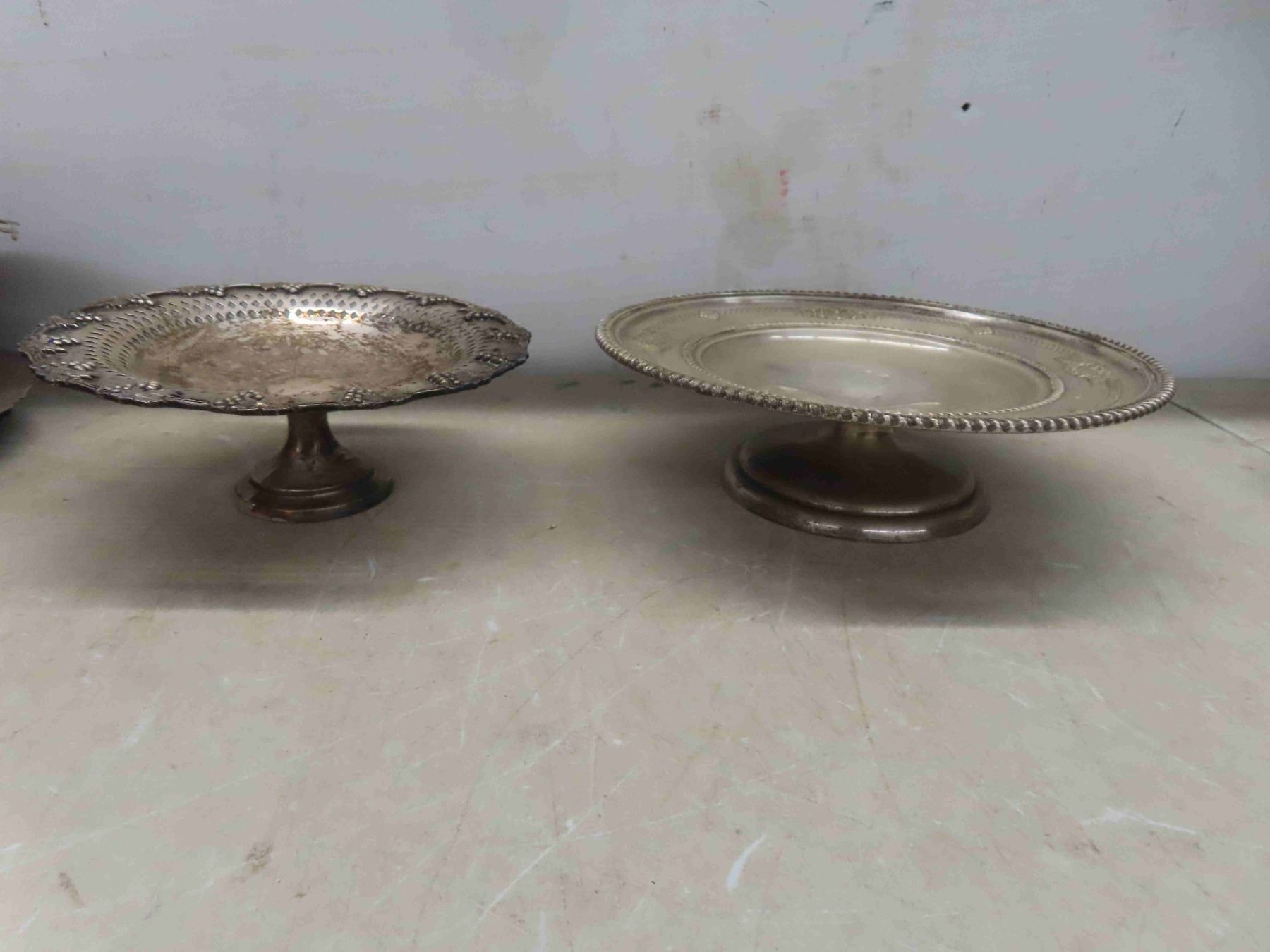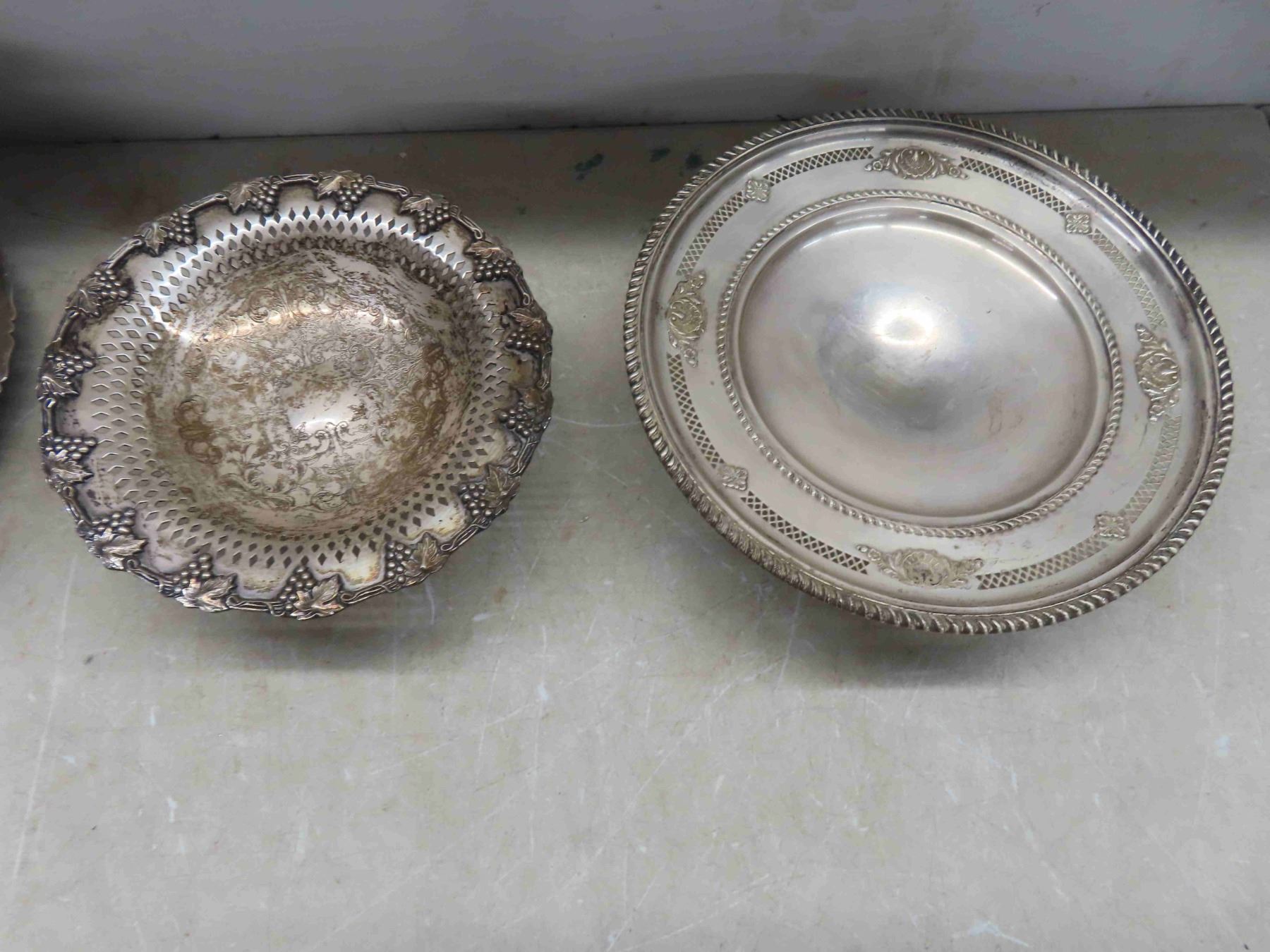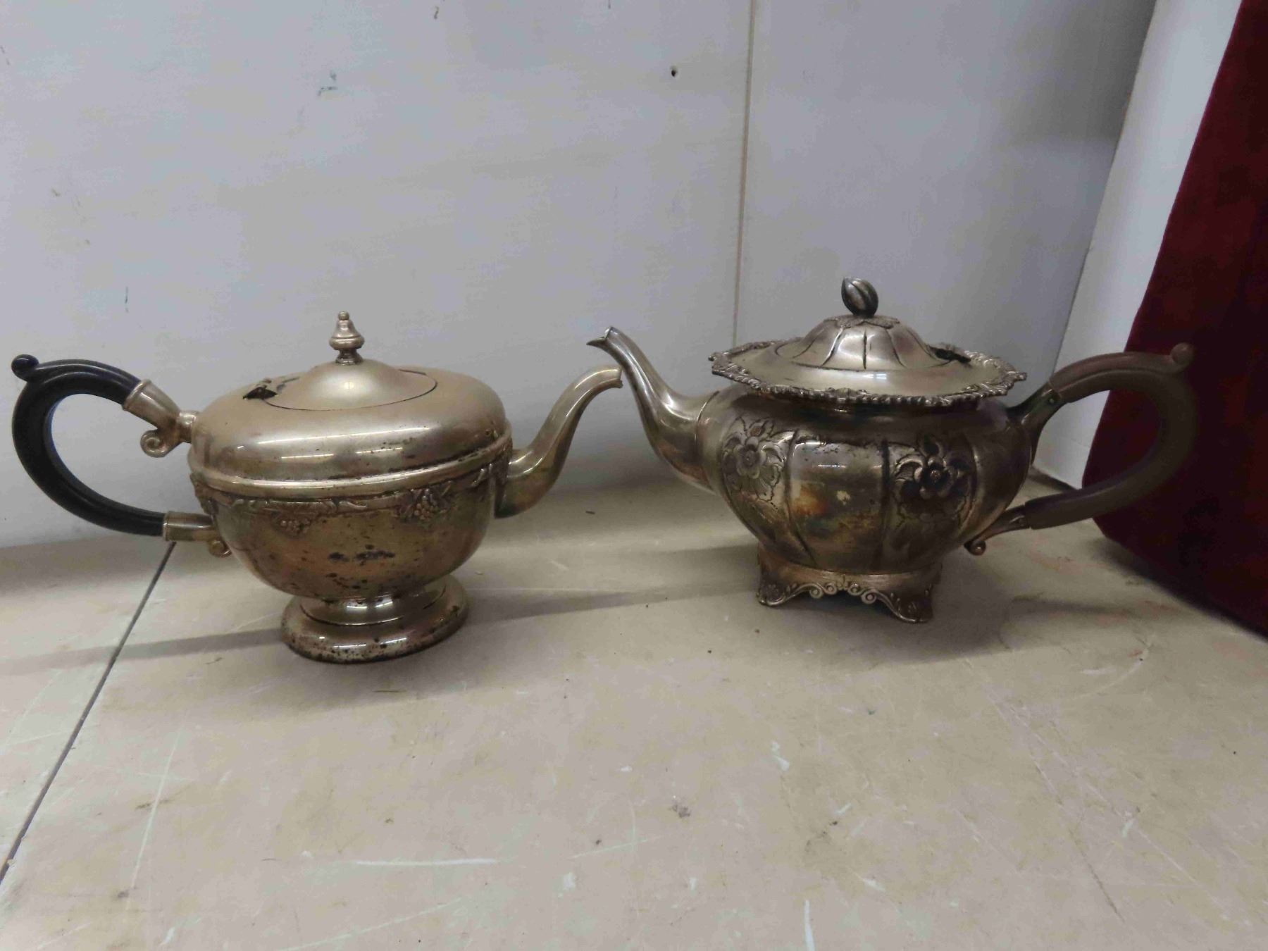 silver platted tea pot, creamer, sugar bowl, tray, candelbra, serving plates and more