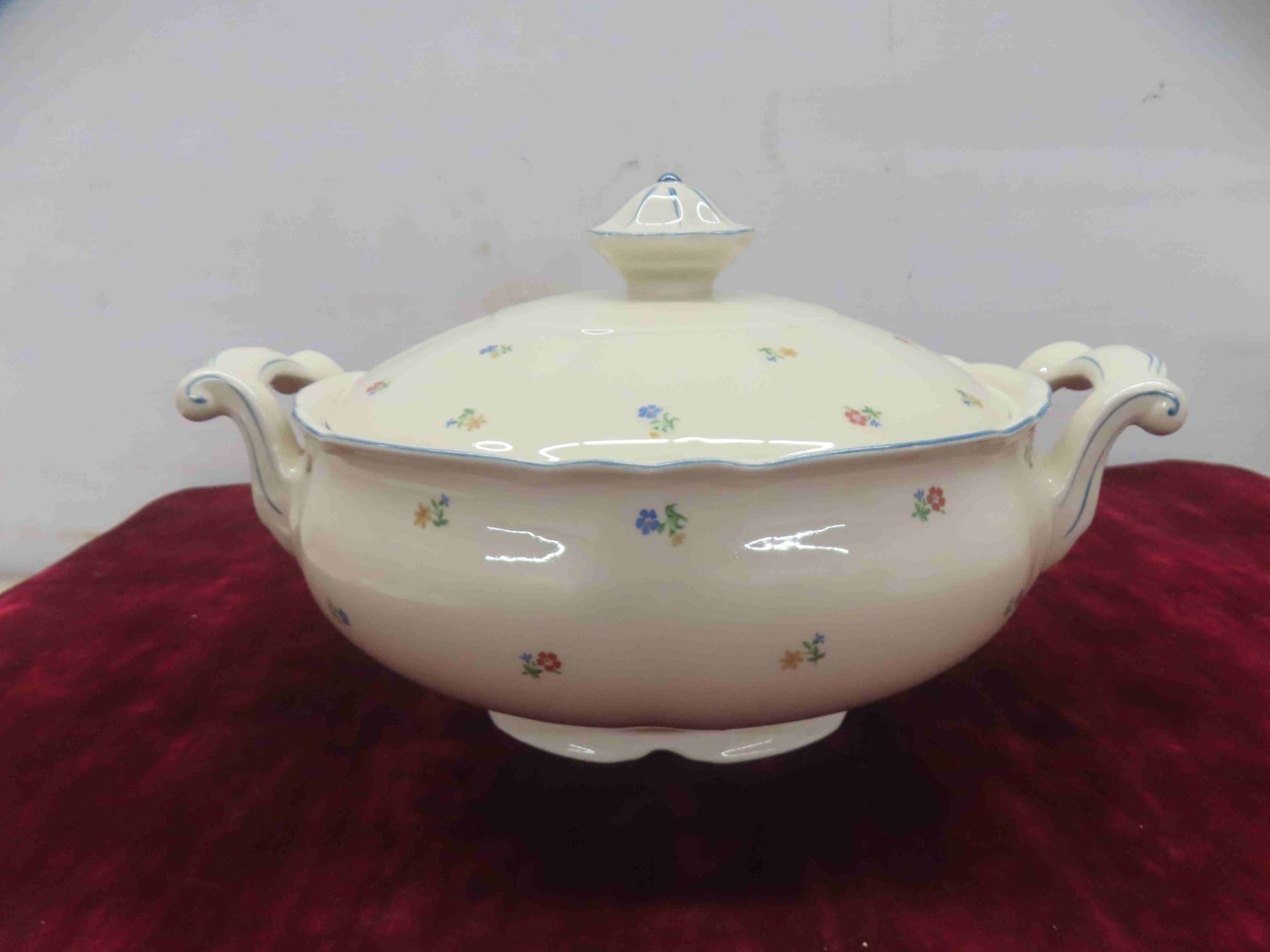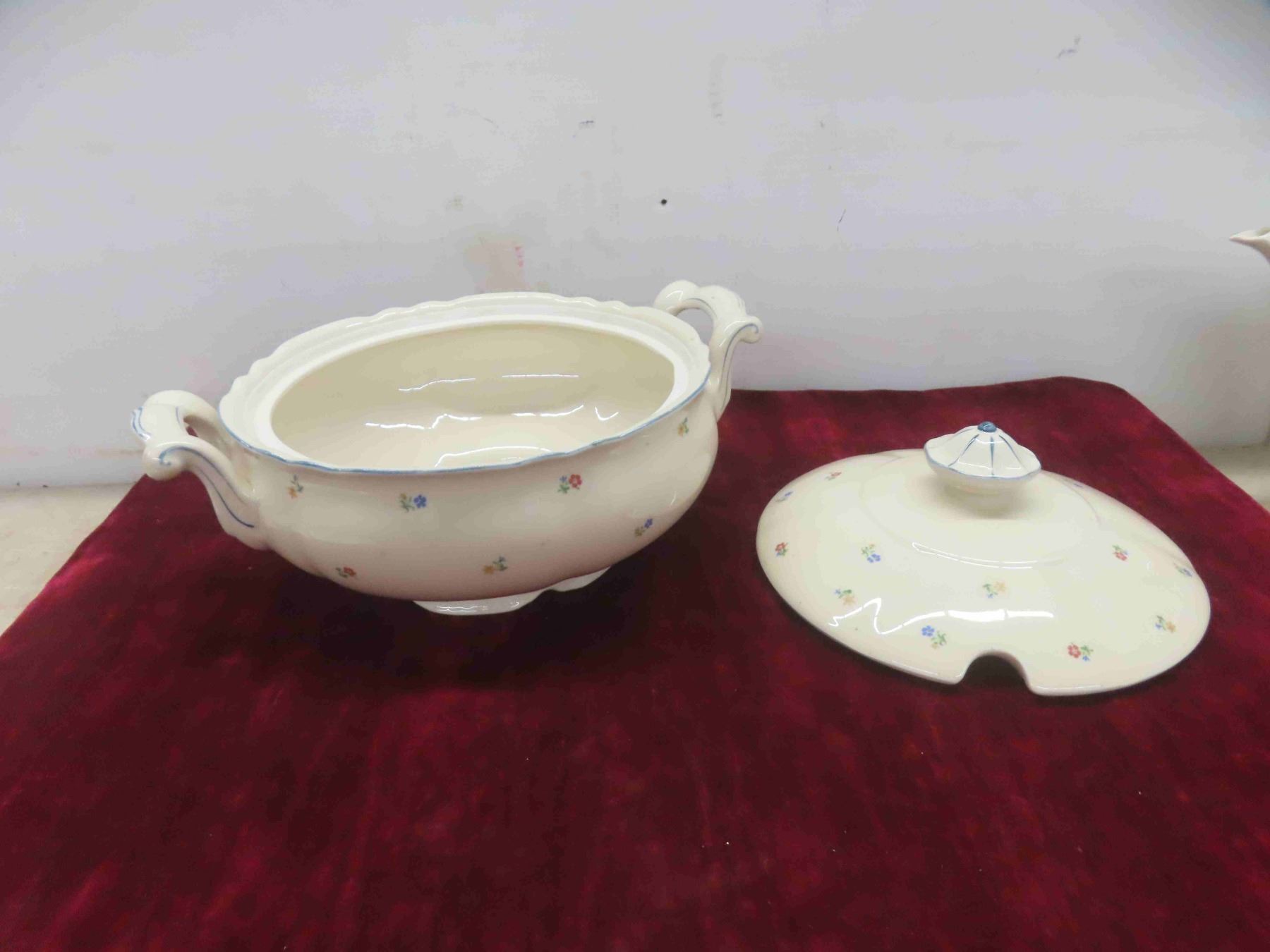 soup tureen and platter, tea or coffeer pot, and a gravy boat.