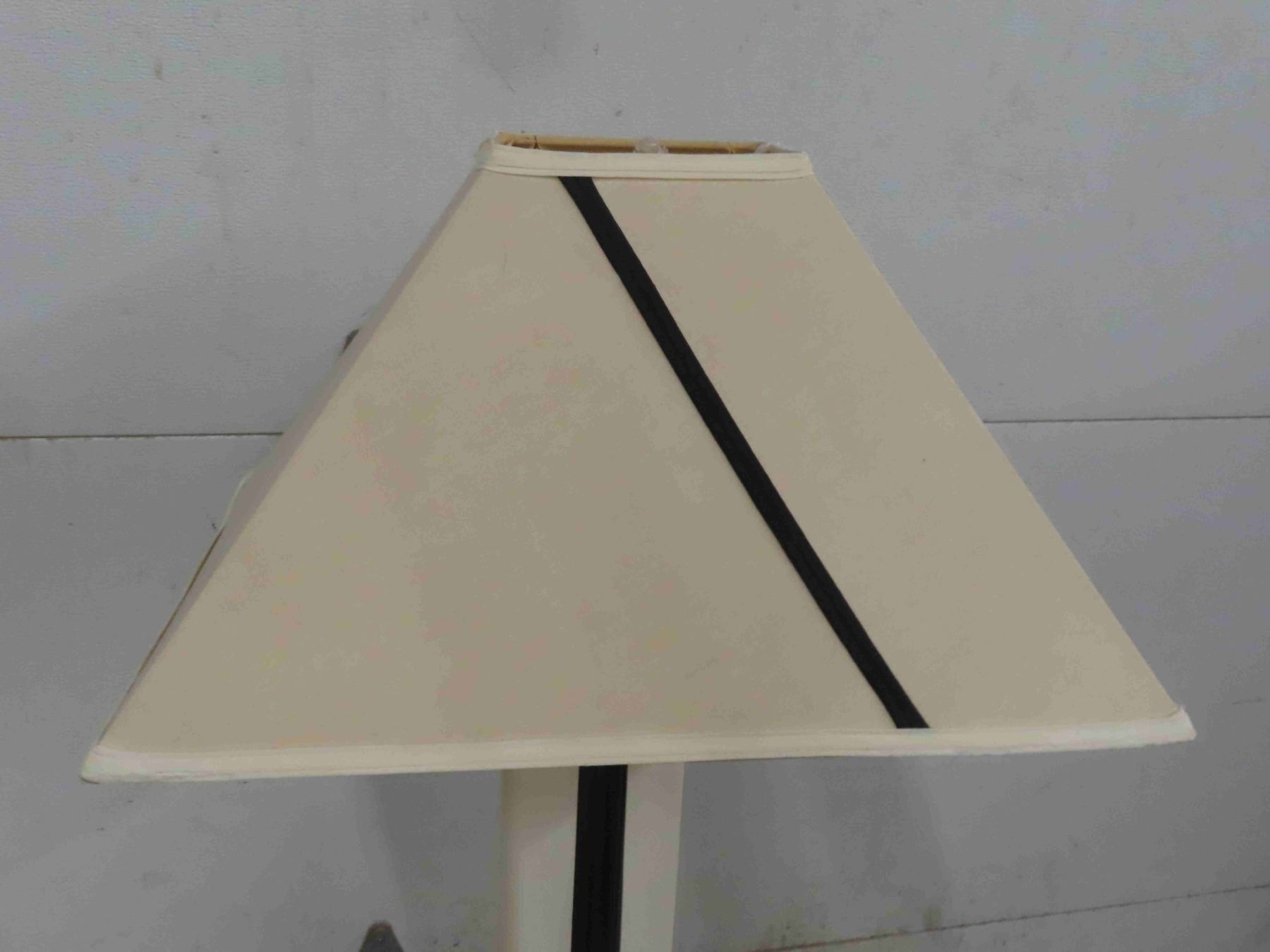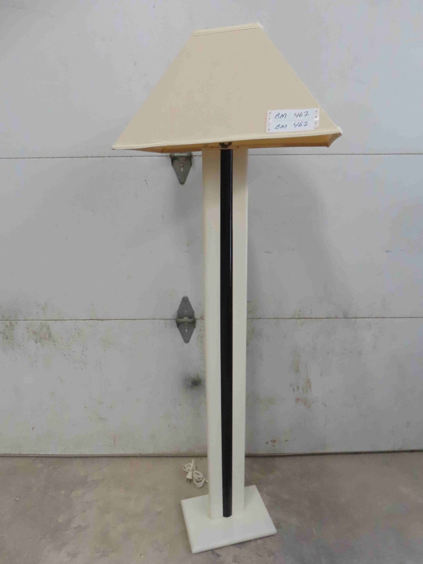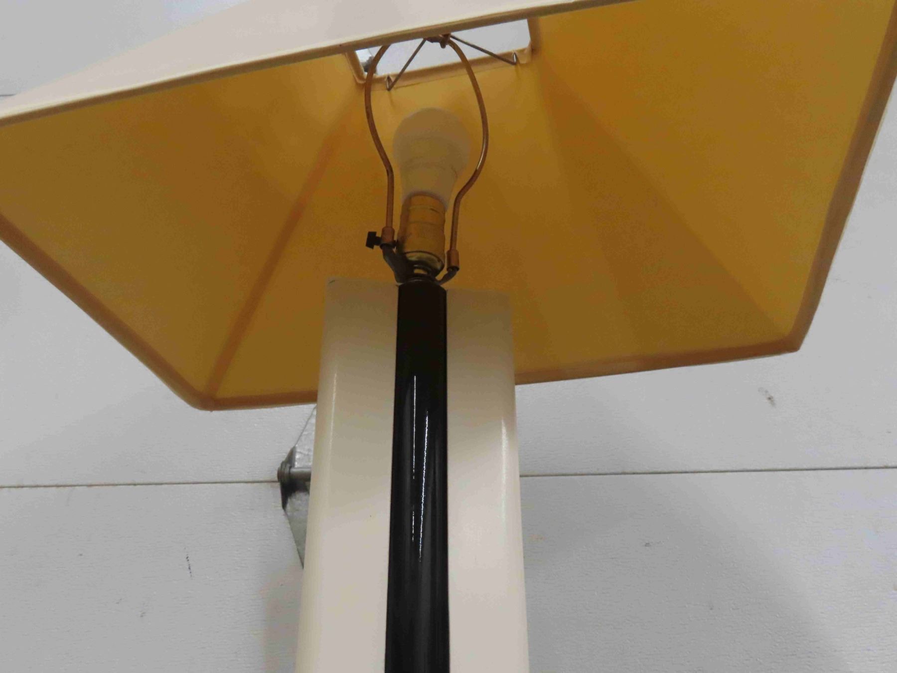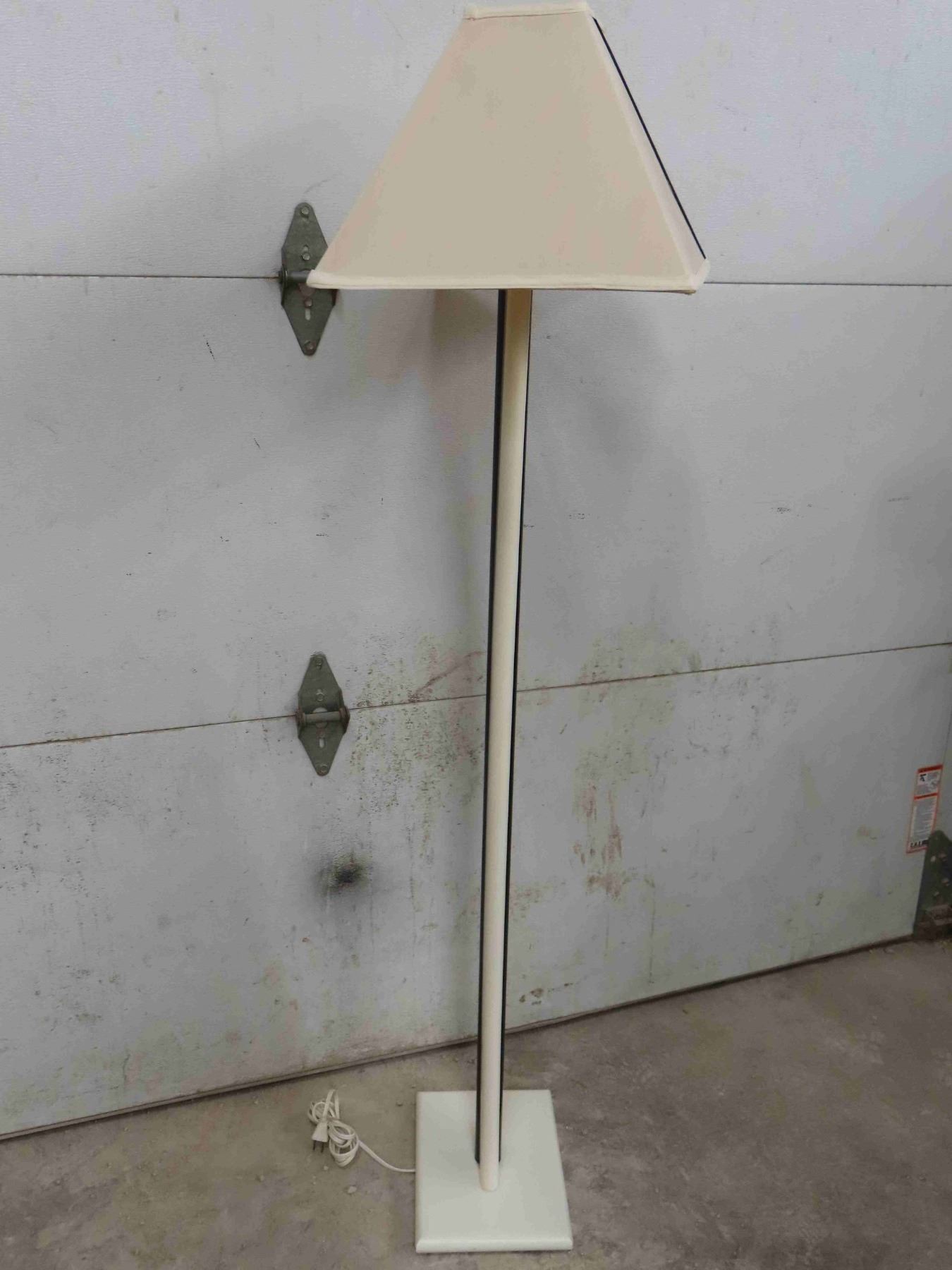 unique vintage wood floor lamp with matching geometric shade 60" tall