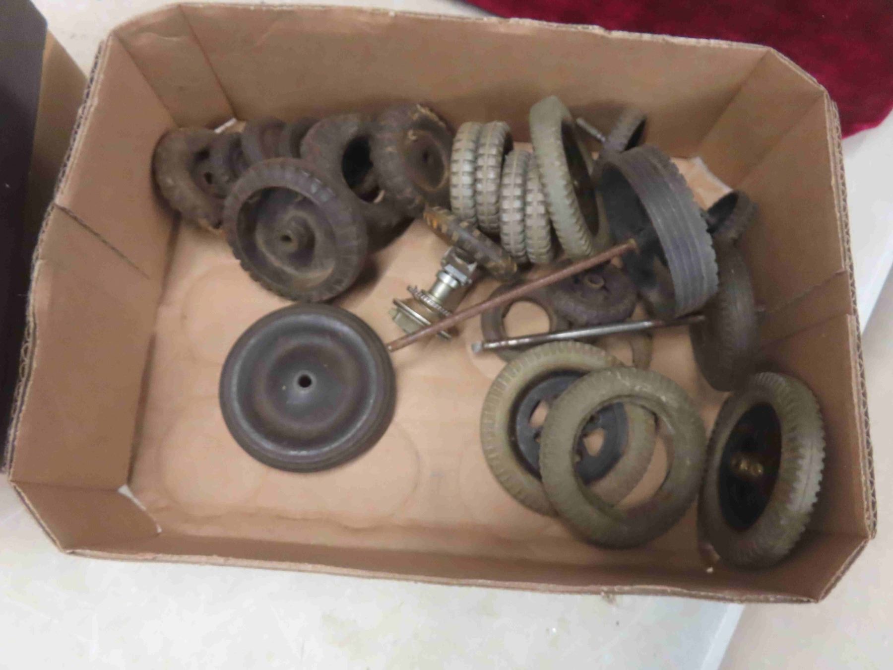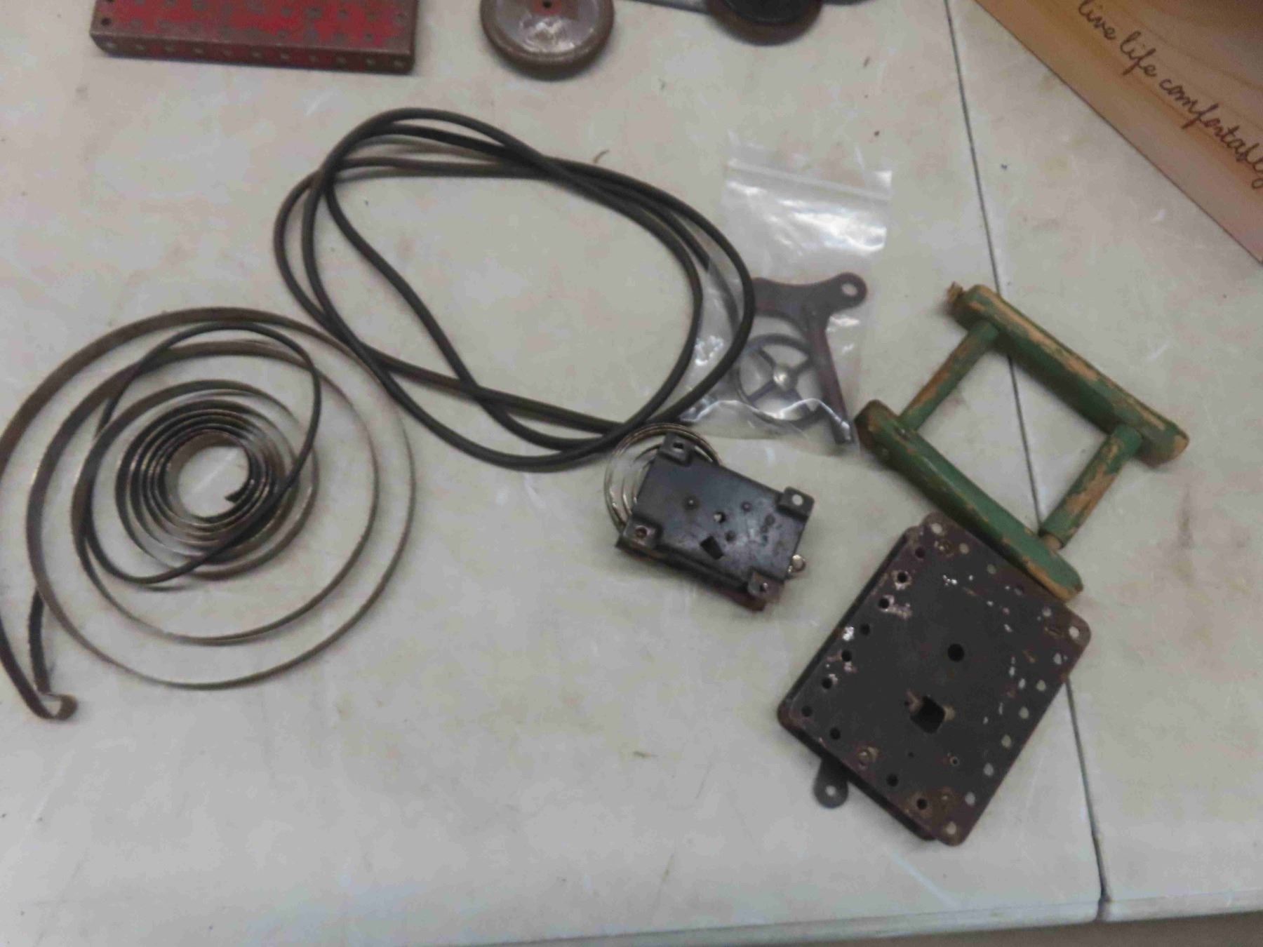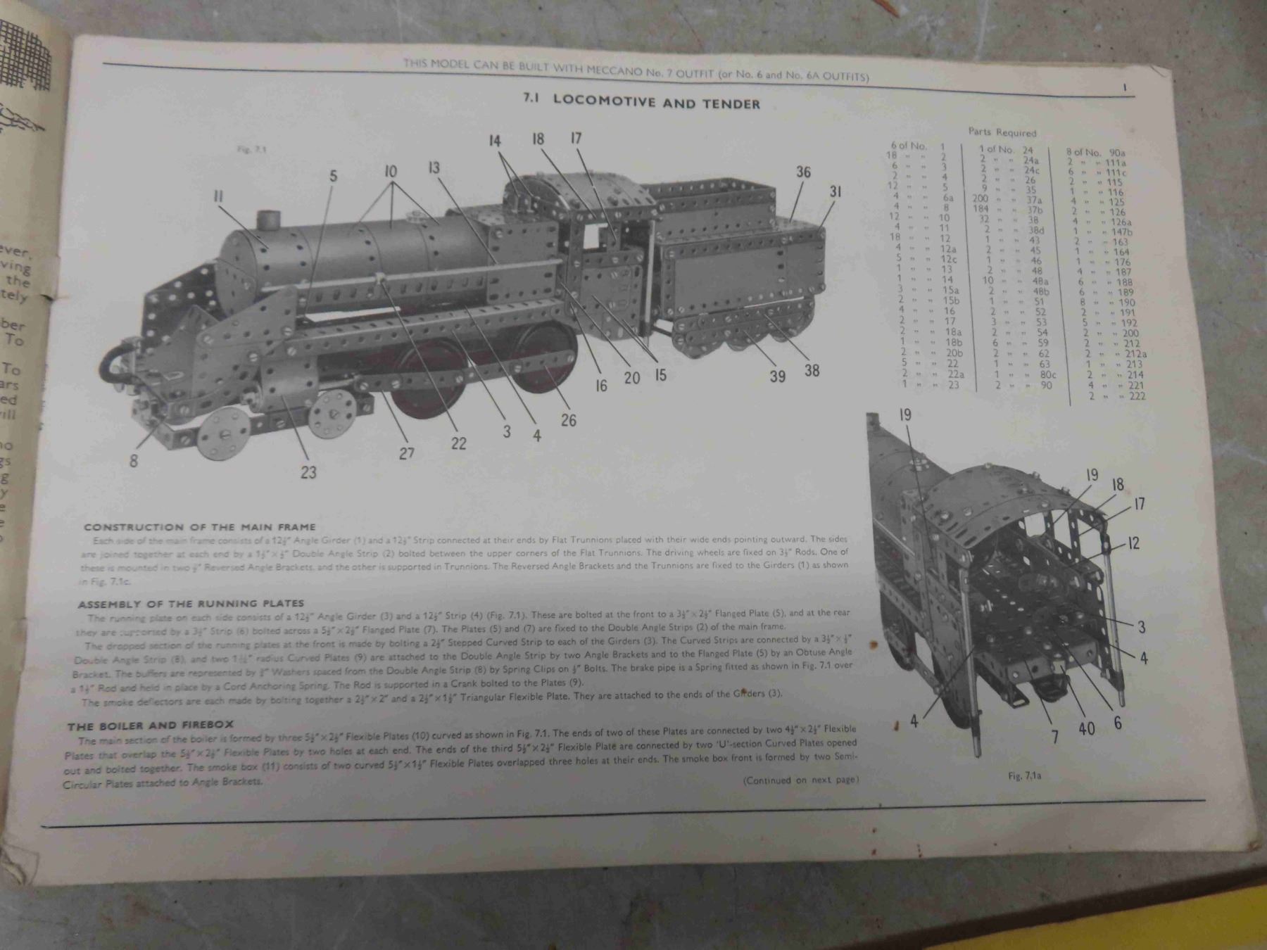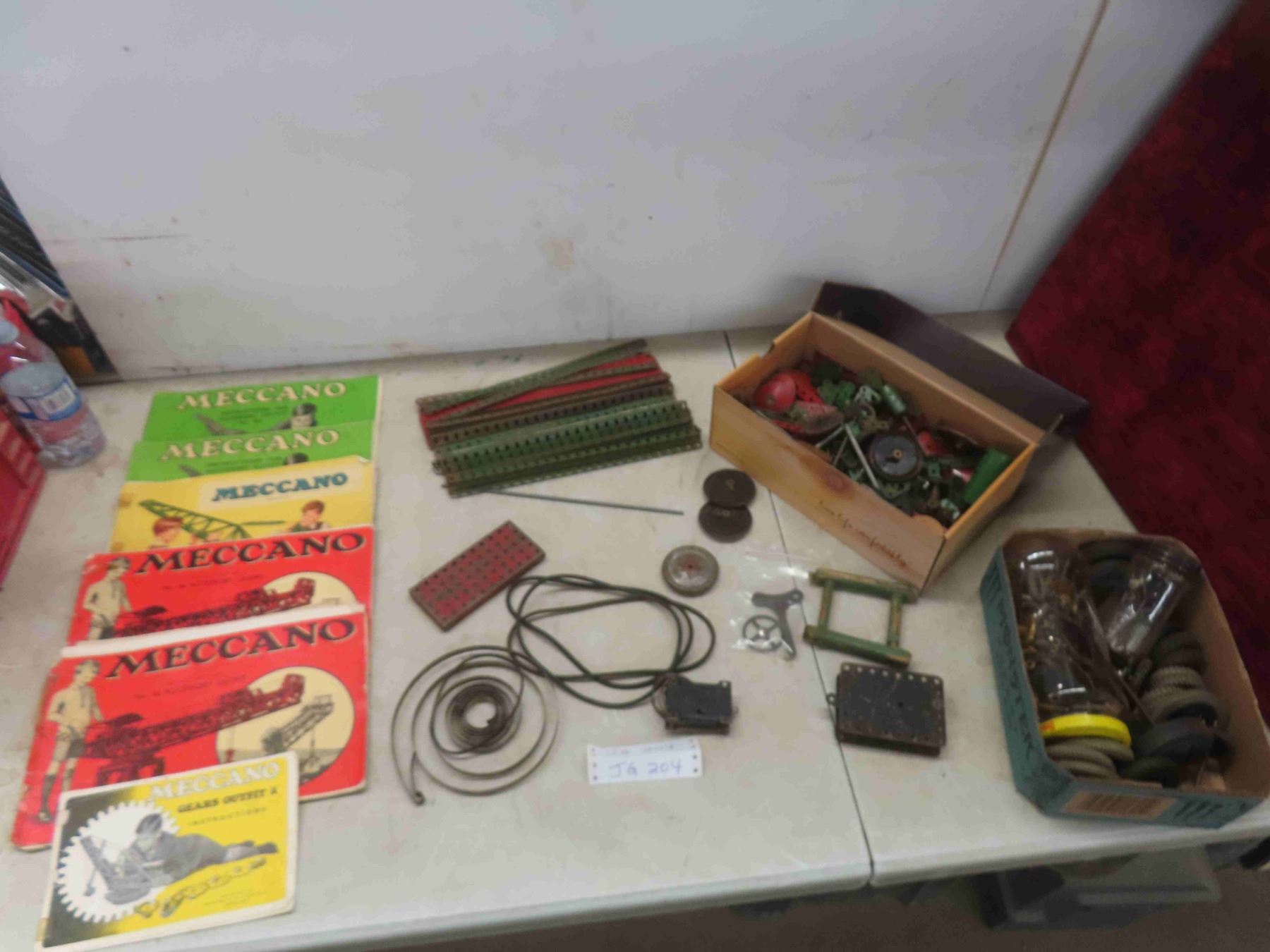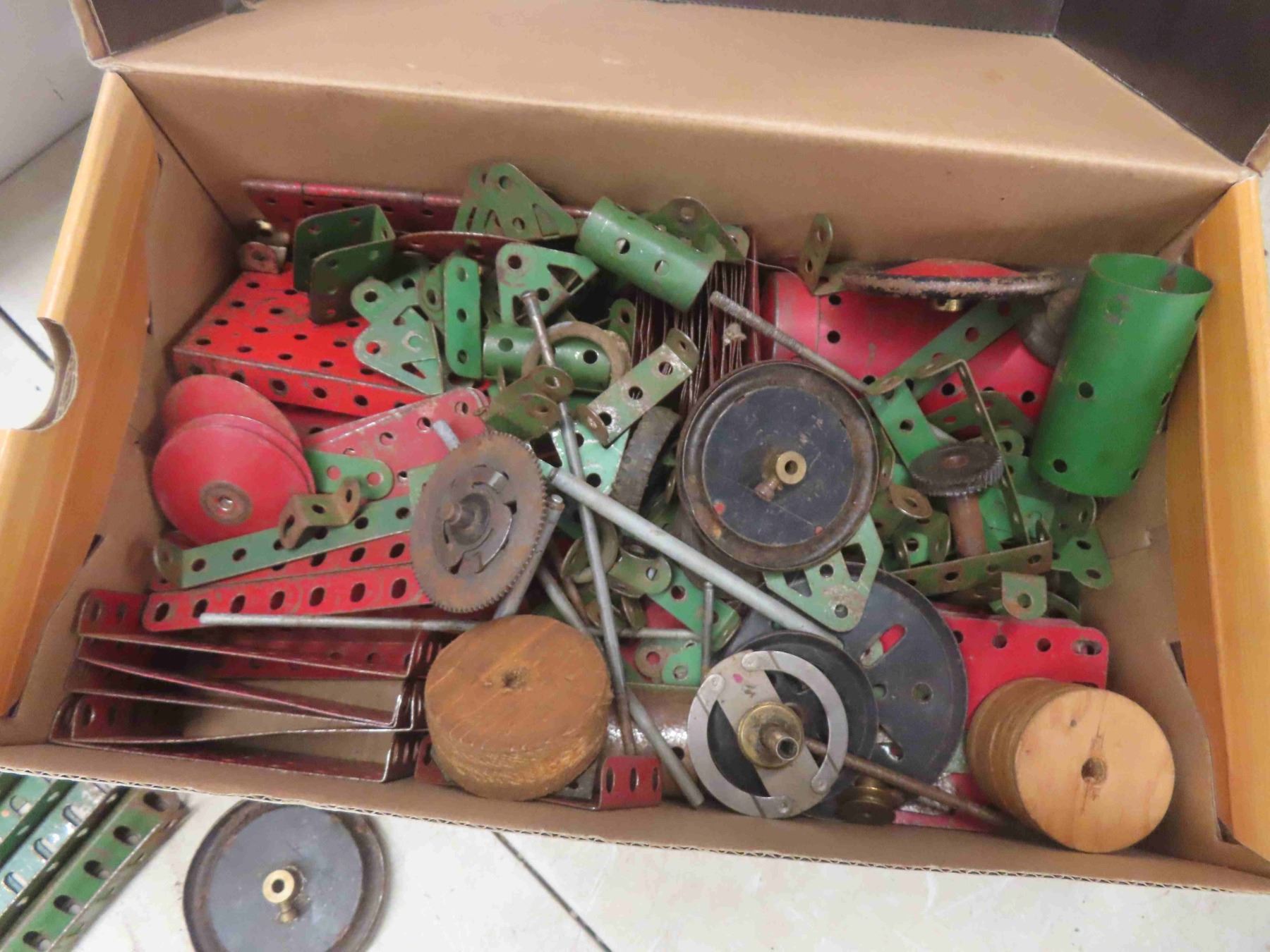 vintage box full of meccano, instruction booklets and all the kinds of parts