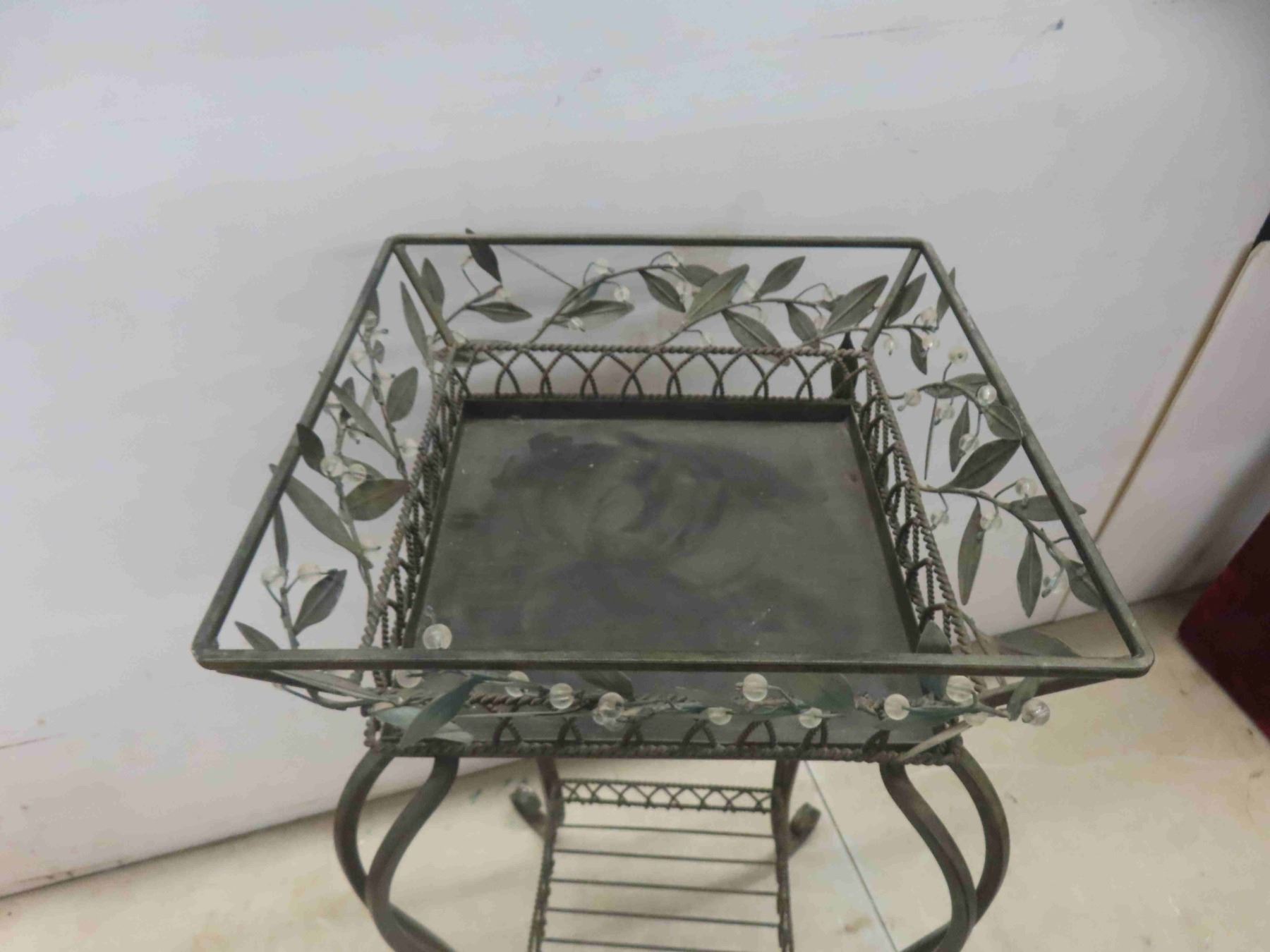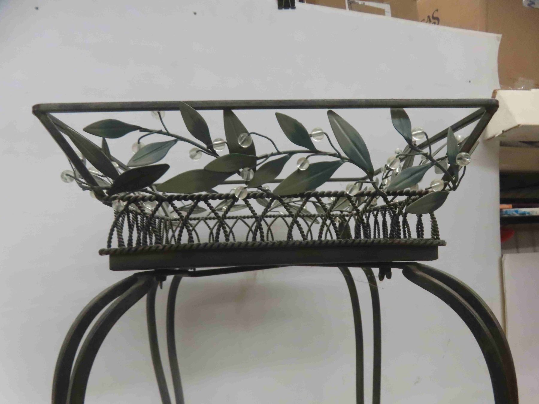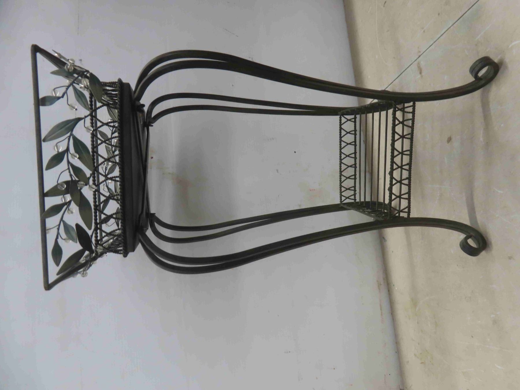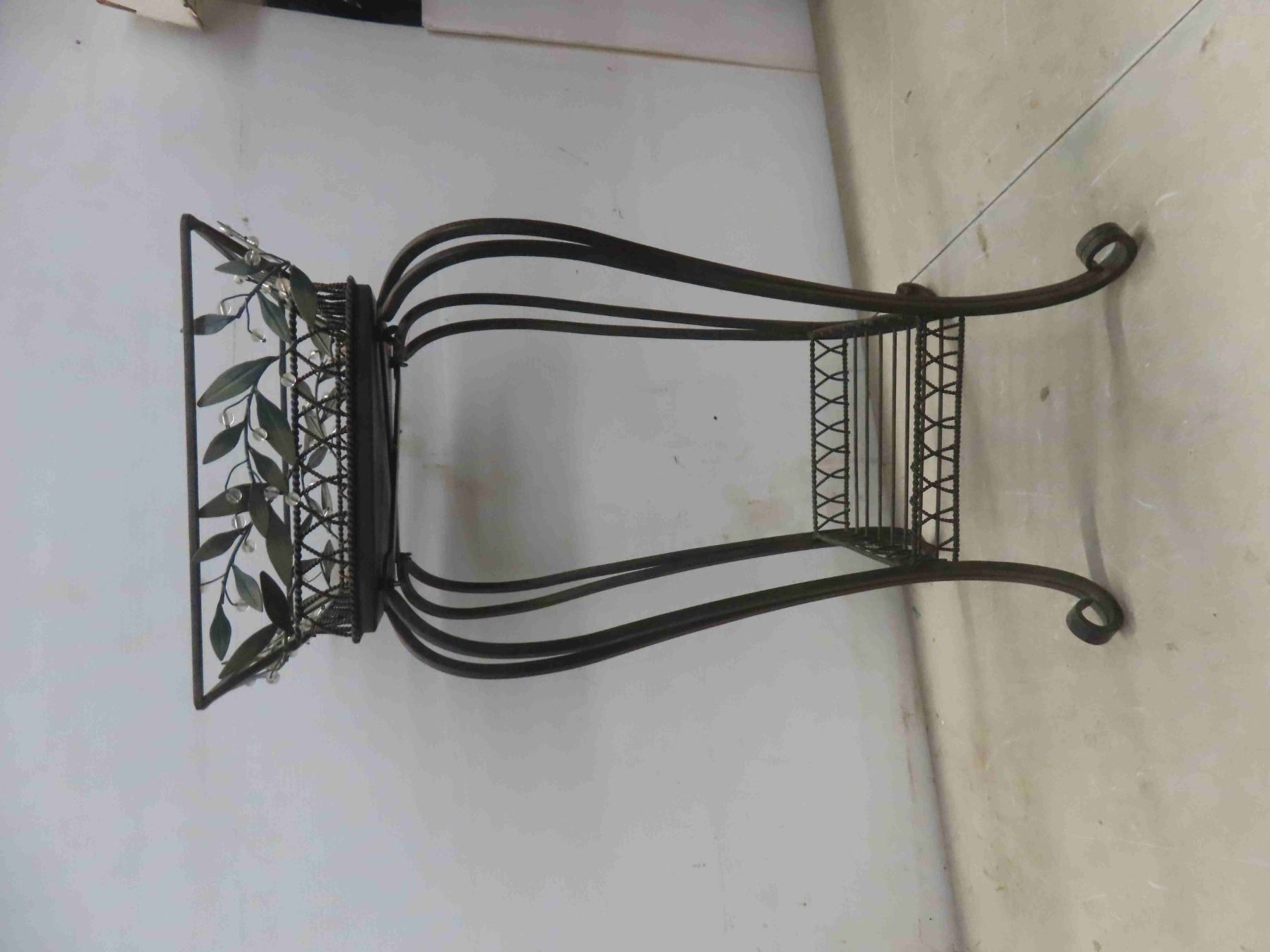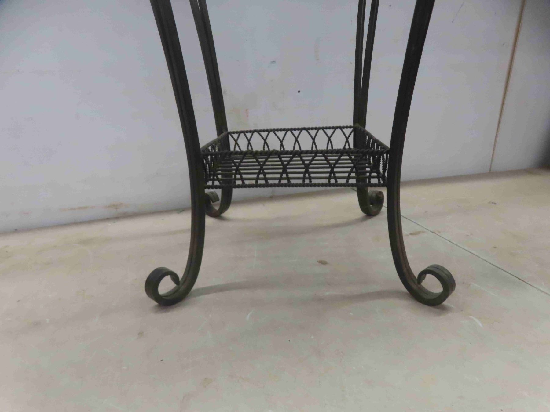 wrought iron plant stand 25"H, 36"W, 64". Faux wood 2" blind,