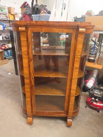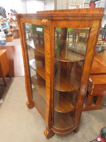 (ww) Tiger Oak Curved Glass China Cabinet 60"' x 41" X 15"